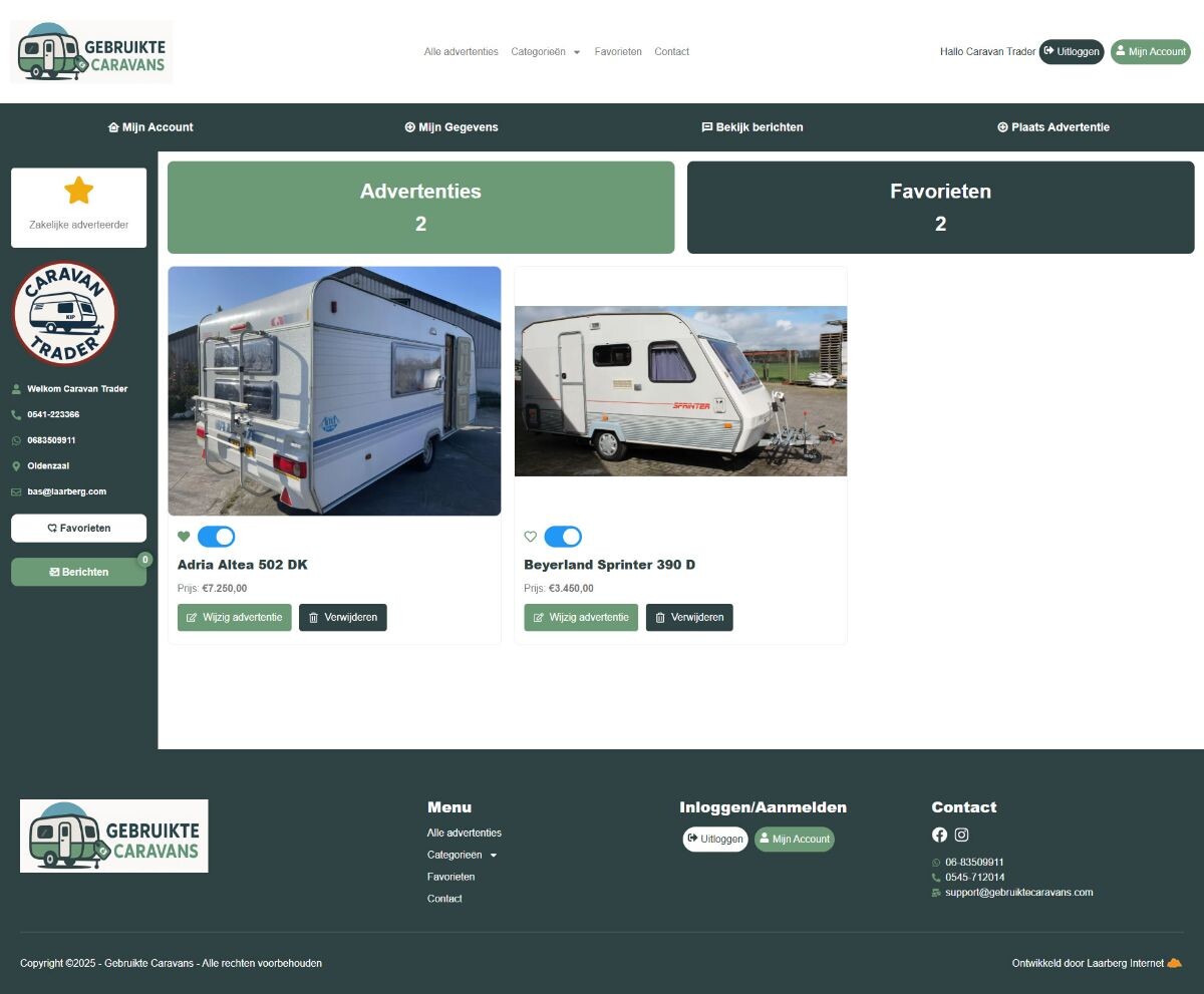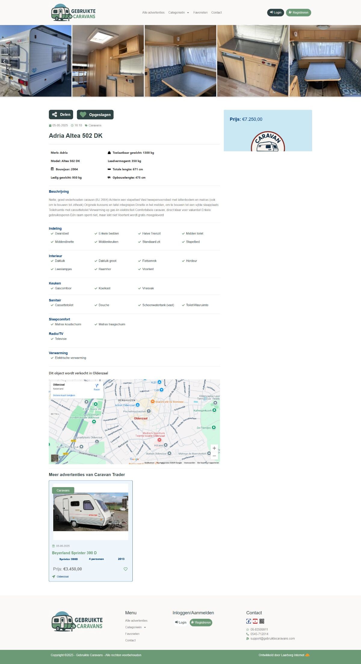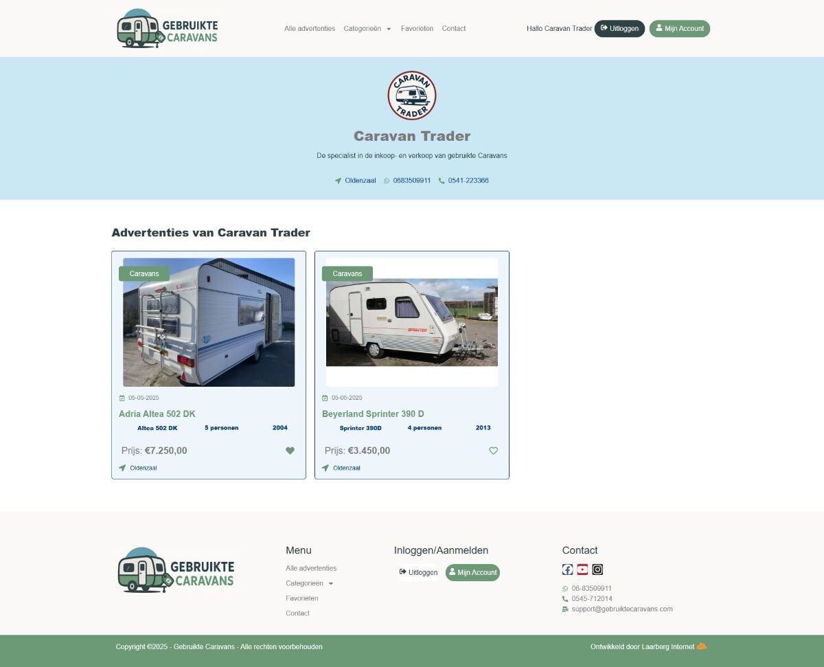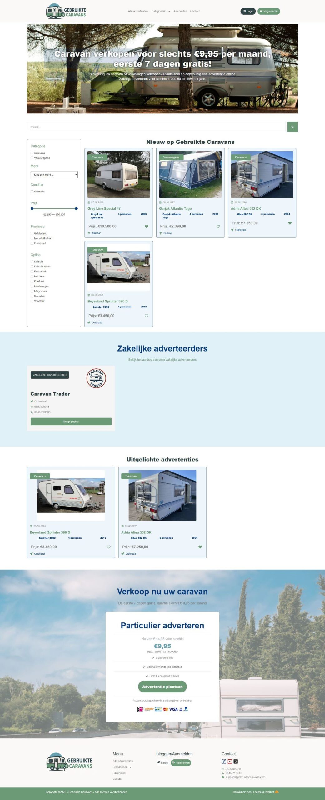 Professionele advertentie site voor het aanbieden van gebruikte caravans en vouwwagens.