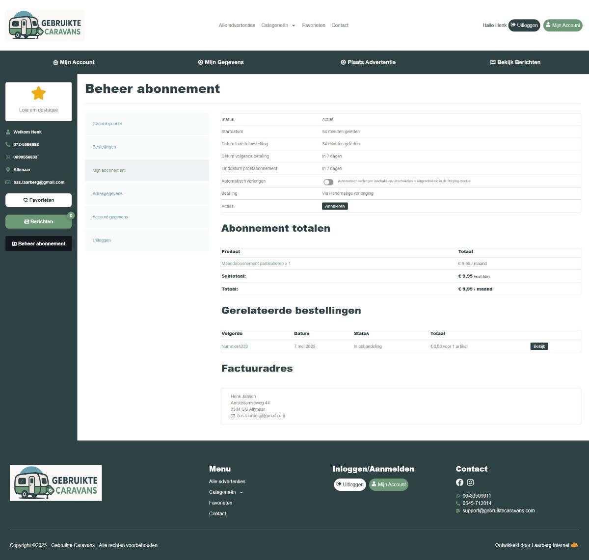 Deze site kan koppeld worden aan bijvoorbeeld Mollie, zodat particuliere adverteerders automatisch per maand betalen.