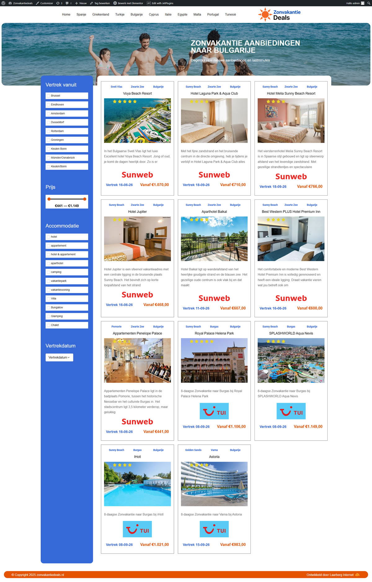 Deze professionele en volledig geautomatiseerde vakantie site heeft ongeveer 3700 zonvakanties en last minute aanbiedingen.