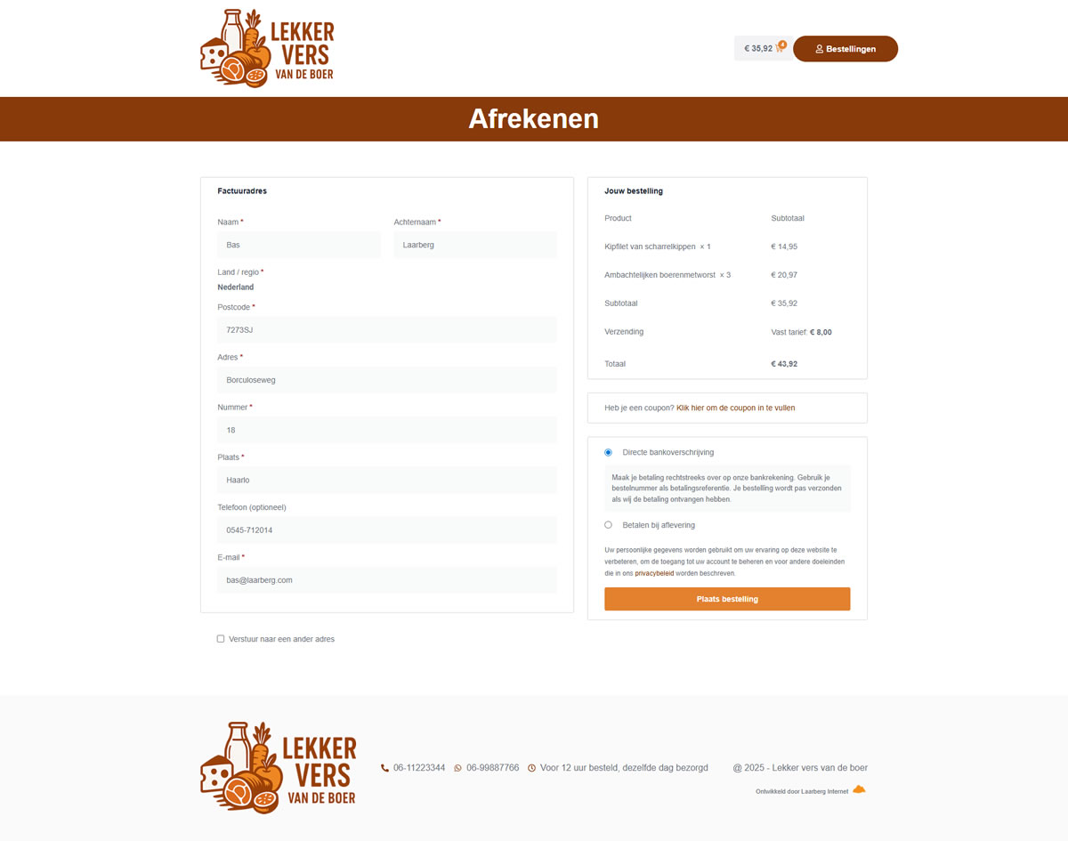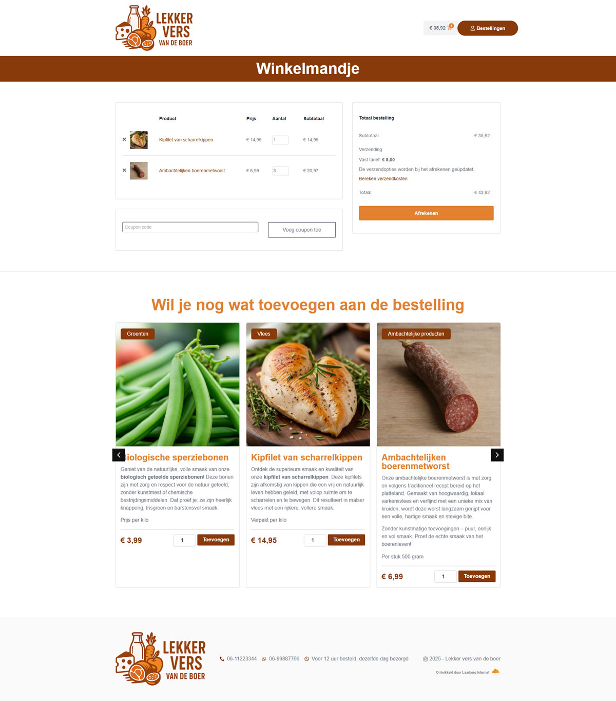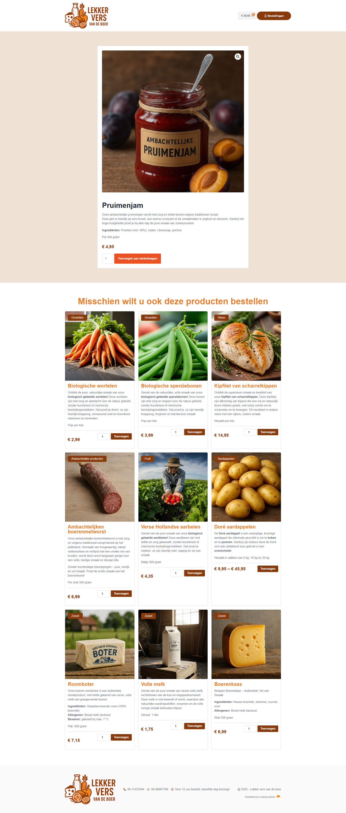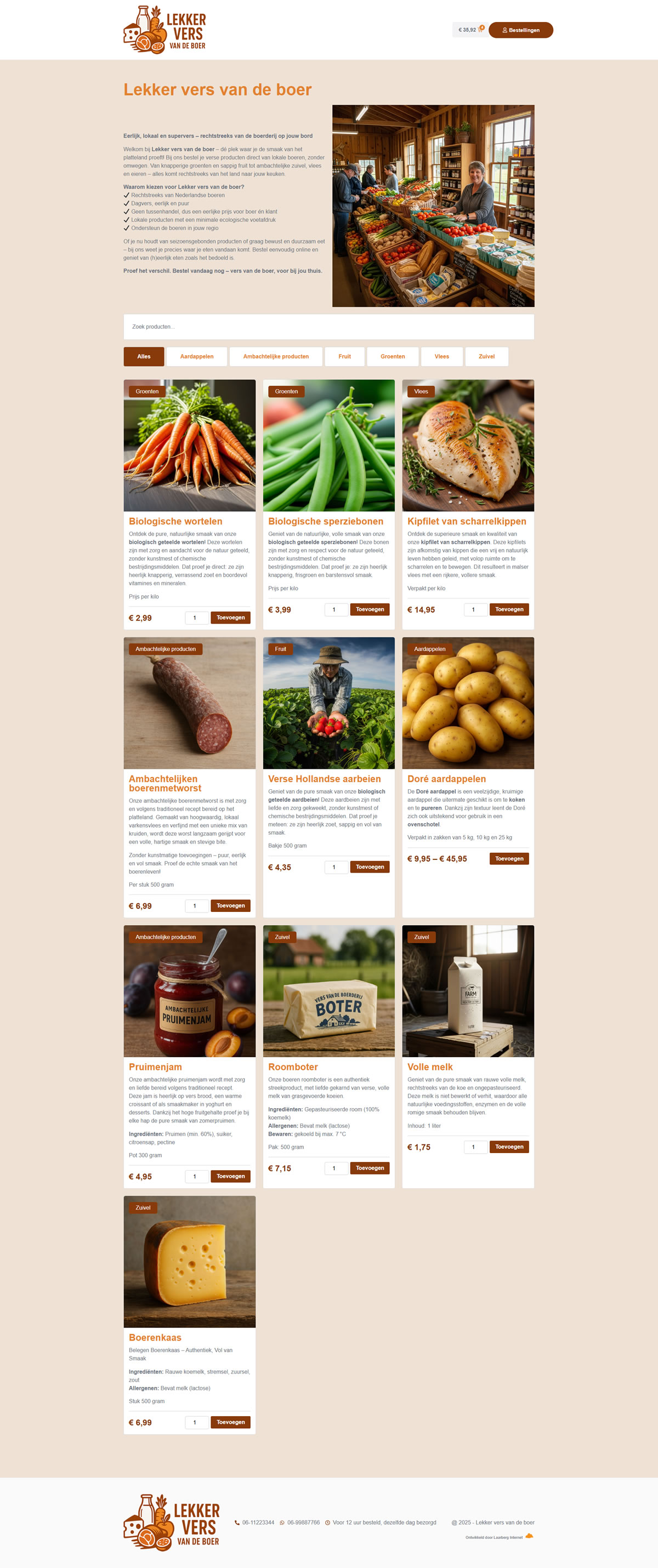 Mooie webwinkel voor de verkoop van vlees, zuivel, groent, fruit en ambachtelijke producten direct van de boerderij.